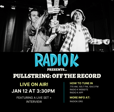 Pullstring will be on Radio K's "Off The Record" show this Friday at 3:30pm