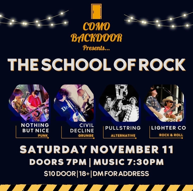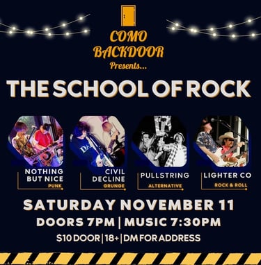 We’re coming back to the Como Backdoor in Minneapolis on Saturday 11/11 when they host the School of Rock! Lessons in the way of rock will be provided by Lighter Co, Pullstring, Civil Decline, and Nothing But Nice. 🔥